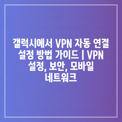 갤럭시에서 VPN 자동 연결 설정 방법 가이드 | VPN 설정, 보안, 모바일 네트워크
