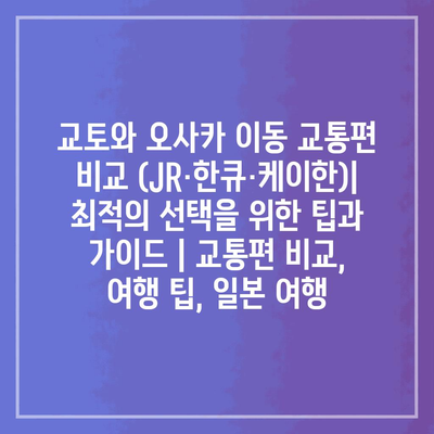 교토와 오사카 이동 교통편 비교 (JR·한큐·케이한)| 최적의 선택을 위한 팁과 가이드 | 교통편 비교, 여행 팁, 일본 여행 에 대해 자주 묻는 질문 TOP 5