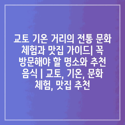 교토 기온 거리의 전통 문화 체험과 맛집 가이드로 떠나보세요. 이곳은 일본의 전통을 생생하게 느낄 수 있는 장소로, 꼭 방문해야 할 명소와 추천 음식이 가득합니다.