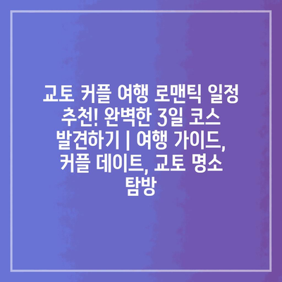 위의 표는 각각의 일정에 맞춰 교토에서 꼭 방문해야 할 명소와 활동을 정리하였습니다. 첫 날에는 교토의 아름다움을 감상하고, 둘째 날에는 전통 문화를 체험하며, 마지막 날에는 로맨틱한 순간을 즐길 수 있는 계획으로 구성되어 있습니다. 이 일정은 커플에게 잊지 못할 특별한 여행 경험을 선사할 것입니다.