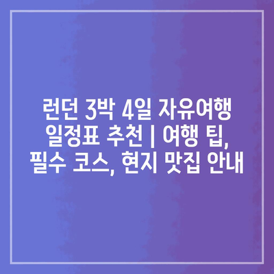 런던 3박 4일 자유여행 일정표 추천 | 여행 팁, 필수 코스, 현지 맛집 안내 에 대해 자주 묻는 질문 TOP 5