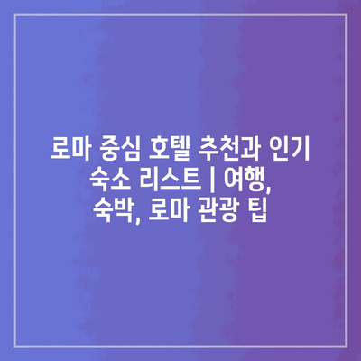 로마 중심 호텔 추천과 인기 숙소 리스트 | 여행, 숙박, 로마 관광 팁 에 대해 자주 묻는 질문 TOP 5