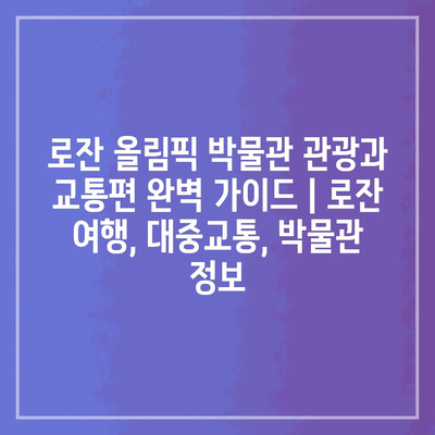 로잔 올림픽 박물관 관광과 교통편 완벽 가이드 | 로잔 여행, 대중교통, 박물관 정보