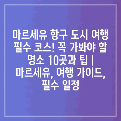 마르세유 항구 도시 여행 필수 코스! 꼭 가봐야 할 명소 10곳과 팁 | 마르세유, 여행 가이드, 필수 일정