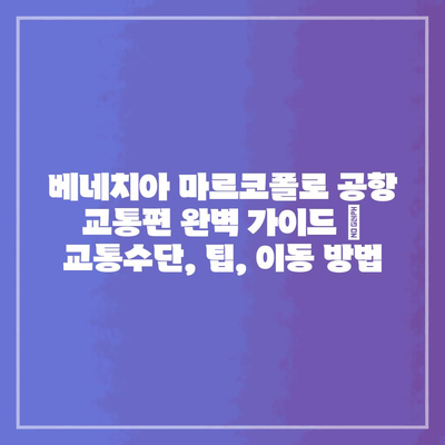 베네치아 마르코폴로 공항 교통편 완벽 가이드 | 교통수단, 팁, 이동 방법