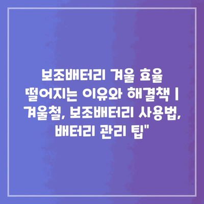 보조배터리 겨울 효율 떨어지는 이유와 해결책 | 겨울철, 보조배터리 사용법, 배터리 관리 팁에 대해 자주 묻는 질문 TOP 5