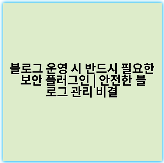 블로그 운영 시 반드시 필요한 보안 플러그인 | 안전한 블로그 관리 비결