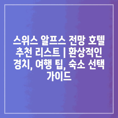 스위스 알프스 전망 호텔 추천 리스트 | 환상적인 경치, 여행 팁, 숙소 선택 가이드