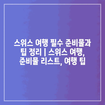 이렇게 준비물 리스트를 체크하고 스위스로 떠나면, 더욱 즐거운 여행이 될 것입니다. 매력적인 풍경과 따뜻한 사람들을 만날 준비를 하세요!