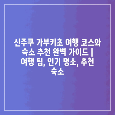 신주쿠 가부키초 여행 코스와 숙소 추천 완벽 가이드 | 여행 팁, 인기 명소, 추천 숙소