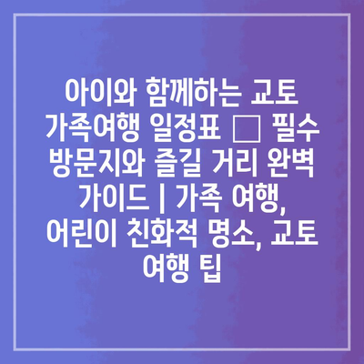 아이와 함께하는 교토 가족여행 일정표 – 필수 방문지와 즐길 거리 완벽 가이드 | 가족 여행, 어린이 친화적 명소, 교토 여행 팁