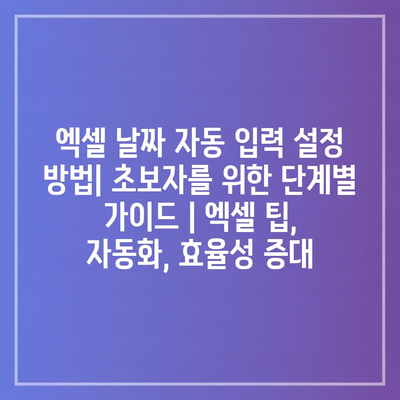 엑셀 날짜 자동 입력 설정 방법| 초보자를 위한 단계별 가이드 | 엑셀 팁, 자동화, 효율성 증대에 대해 자주 묻는 질문 TOP 5