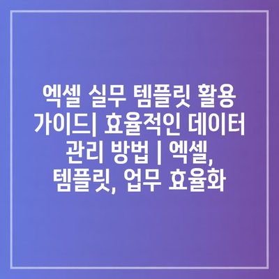 엑셀 실무 템플릿 활용 가이드| 효율적인 데이터 관리 방법 | 엑셀, 템플릿, 업무 효율화