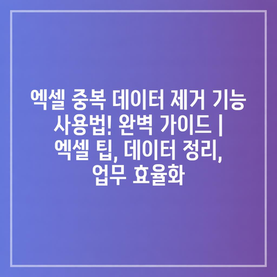 엑셀 중복 데이터 제거 기능 사용법! 완벽 가이드 | 엑셀 팁, 데이터 정리, 업무 효율화