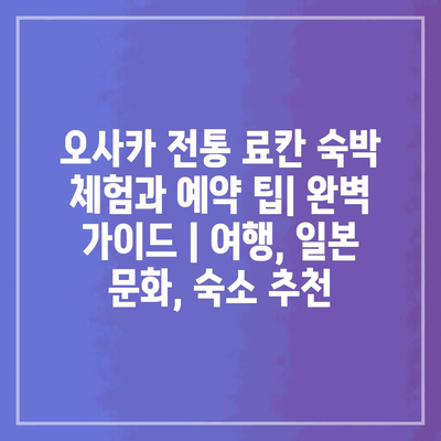 오사카 전통 료칸 숙박 체험과 예약 팁| 완벽 가이드 | 여행, 일본 문화, 숙소 추천