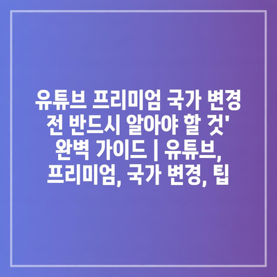 유튜브 프리미엄 국가 변경 전 반드시 알아야 할 것’ 완벽 가이드 | 유튜브, 프리미엄, 국가 변경, 팁