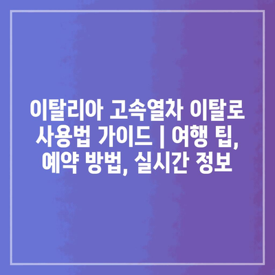 이탈리아 고속열차 이탈로 사용법 가이드 | 여행 팁, 예약 방법, 실시간 정보에 대해 자주 묻는 질문 TOP 5
