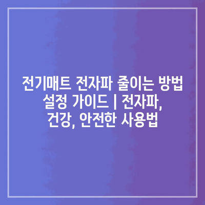 전기매트를 사용할 때 전자파를 줄이는 것은 매우 중요합니다. 올바른 설정을 통해 보다 안전하게 사용할 수 있습니다.