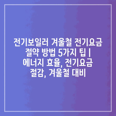전기보일러 겨울철 전기요금 절약 방법 5가지 팁 | 에너지 효율, 전기요금 절감, 겨울철 대비
