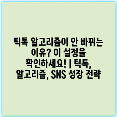 틱톡 알고리즘이 안 바뀌는 이유? 이 설정을 확인하세요! | 틱톡, 알고리즘, SNS 성장 전략