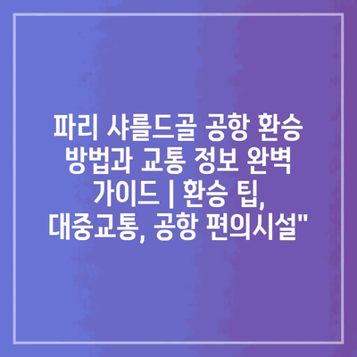 파리 샤를드골 공항 환승 방법과 교통 정보 완벽 가이드 | 환승 팁, 대중교통, 공항 편의시설”