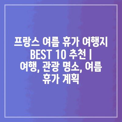 프랑스 여름 휴가 여행지 BEST 10 추천 | 여행, 관광 명소, 여름 휴가 계획