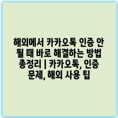해외에서 카카오톡 인증 안 될 때 바로 해결하는 방법 총정리 | 카카오톡, 인증 문제, 해외 사용 팁 에 대해 자주 묻는 질문 TOP 5