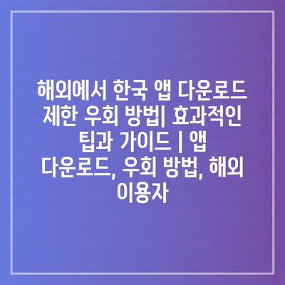 해외에서 한국 앱 다운로드 제한 우회 방법| 효과적인 팁과 가이드 | 앱 다운로드, 우회 방법, 해외 이용자