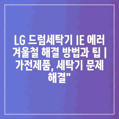 LG 드럼세탁기 IE 에러 겨울철 해결 방법과 팁 | 가전제품, 세탁기 문제 해결”