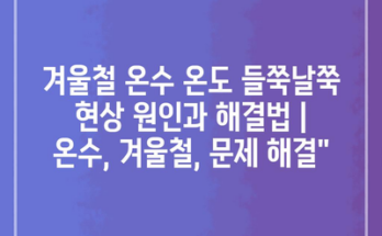 겨울철 온수 온도 들쭉날쭉 현상 원인과 해결법 | 온수, 겨울철, 문제 해결”