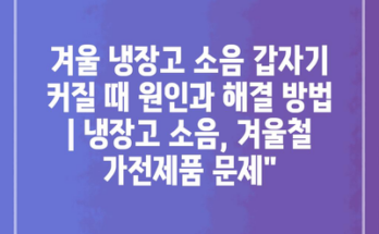 겨울 냉장고 소음 갑자기 커질 때 원인과 해결 방법 | 냉장고 소음, 겨울철 가전제품 문제”