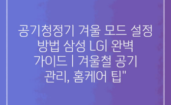 공기청정기 겨울 모드 설정 방법 삼성 LG| 완벽 가이드 | 겨울철 공기 관리, 홈케어 팁”