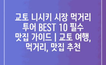 교토 니시키 시장 먹거리 투어 BEST 10 필수 맛집 가이드는 교토 여행의 필수 코스입니다. 이곳은 일본 전통 음식과 다양한 먹거리를 즐길 수 있는 장소로, 매력적인 상점들이 즐비해 있습니다. 특히, 신선한 …