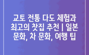교토 전통 다도 체험과 최고의 찻집 추천 | 일본 문화, 차 문화, 여행 팁 교토에서의 전통 다도 체험은 일본의 깊은 문화를 느낄 수 있는 소중한 기회입니다. 이곳에서는 차를 우리는 것뿐만 …