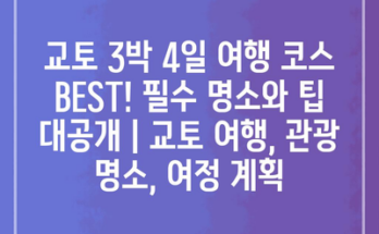 교토 3박 4일 여행 코스 BEST! 필수 명소와 팁 대공개 | 교토 여행, 관광 명소, 여정 계획 교토는 일본의 전통 문화와 아름다운 경치를 만끽할 수 있는 완벽한 여행지입니다. 3박 4일 …