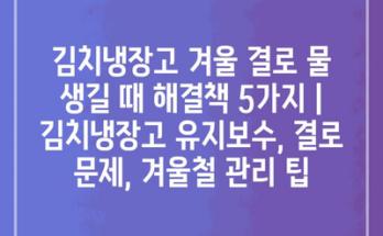 김치냉장고 겨울 결로 물 생길 때 해결책 5가지 | 김치냉장고 유지보수, 결로 문제, 겨울철 관리 팁