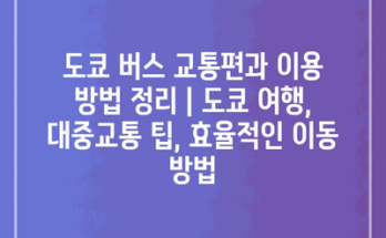 도쿄 버스 교통편과 이용 방법 정리 | 도쿄 여행, 대중교통 팁, 효율적인 이동 방법 Read More