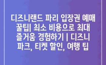 디즈니랜드 파리 입장권 예매 꿀팁| 최소 비용으로 최대 즐거움 경험하기 | 디즈니 파크, 티켓 할인, 여행 팁 가장 먼저, 디즈니랜드 파리의 공식 웹사이트를 활용하는 것이 좋습니다. 정기적인 할인 이벤트가 진행되며, …