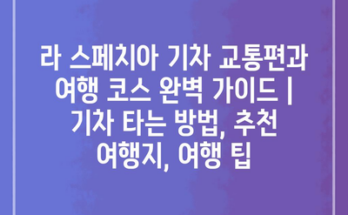 라 스페치아 기차 교통편과 여행 코스 완벽 가이드 | 기차 타는 방법, 추천 여행지, 여행 팁에 대한 정보를 제공합니다. 라 스페치아는 이탈리아의 아름다운 도시로, 기차를 통해 이동하기에 매우 편리합니다. 기차 …