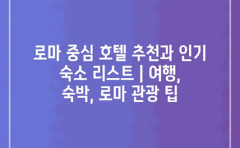 로마 중심 호텔 추천과 인기 숙소 리스트 | 여행, 숙박, 로마 관광 팁 로마는 역사와 문화가 가득한 도시로, 관광객을 위한 매력적인 숙소가 많이 있습니다. 가장 인기 있는 지역 중 하나는 …