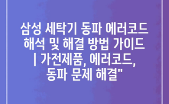 삼성 세탁기 동파 에러코드 해석 및 해결 방법 가이드 | 가전제품, 에러코드, 동파 문제 해결”