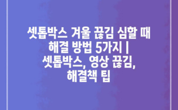 셋톱박스 겨울 끊김 심할 때 해결 방법 5가지 | 셋톱박스, 영상 끊김, 해결책 팁 겨울철에는 셋톱박스 사용 중 영상이 끊기는 문제가 자주 발생할 수 있습니다. 특히 추운 날씨에는 인터넷 신호가 …