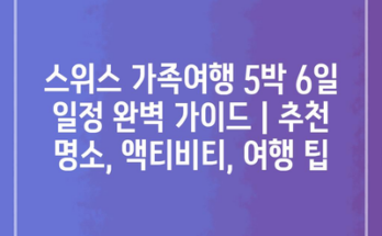 스위스 가족여행 5박 6일 일정 완벽 가이드 | 추천 명소, 액티비티, 여행 팁 스위스는 자연의 아름다움과 문화가 공존하는 여행지입니다. 이 가이드를 통해 가족과 함께 즐길 수 있는 명소와 액티비티를 소개합니다. …