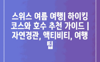 스위스 여름 여행| 하이킹 코스와 호수 추천 가이드 | 자연경관, 액티비티, 여행 팁 스위스는 경이로운 자연경관과 함께 다양한 액티비티를 즐길 수 있는 곳입니다. 여름철, 푸른 초원과 맑은 하늘 아래에서 하이킹을 …