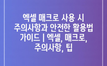엑셀 매크로 사용 시 주의사항과 안전한 활용법 가이드 | 엑셀, 매크로, 주의사항, 팁