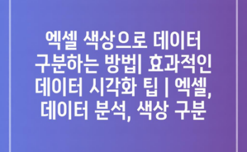 엑셀 색상으로 데이터 구분하는 방법| 효과적인 데이터 시각화 팁 | 엑셀, 데이터 분석, 색상 구분 데이터 분석에서 시각화는 매우 중요한 역할을 합니다. 그 중에서도 색상을 활용한 데이터 구분은 정보를 더욱 …