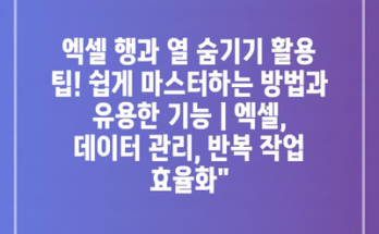 엑셀 행과 열 숨기기 활용 팁! 쉽게 마스터하는 방법과 유용한 기능 | 엑셀, 데이터 관리, 반복 작업 효율화”
