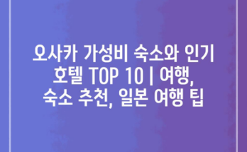 오사카 가성비 숙소와 인기 호텔 TOP 10 | 여행, 숙소 추천, 일본 여행 팁을 통해 여행 계획을 한층 더 편리하게 만들어 드립니다. 오사카는 맛있는 음식과 다양한 관광지가 매력적인 도시입니다. 하지만 …