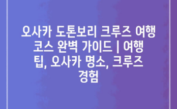 오사카 도톤보리 크루즈 여행 코스 완벽 가이드 | 여행 팁, 오사카 명소, 크루즈 경험 Read More