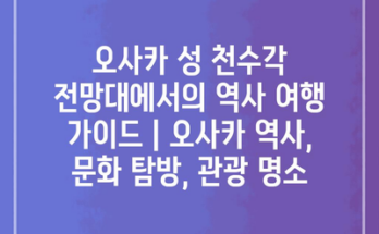 오사카 성 천수각 전망대에서의 역사 여행 가이드 | 오사카 역사, 문화 탐방, 관광 명소 오사카 성은 일본의 역사와 문화를 깊이 느낄 수 있는 장소입니다. 이 성의 가장 상징적인 건물인 천수각은 …